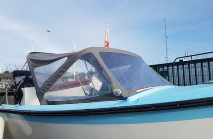 Un banc central amovible qui libère au maximum la circulation à bord . Un taud repliable offrant une protection rapide et simple d'utilisation.